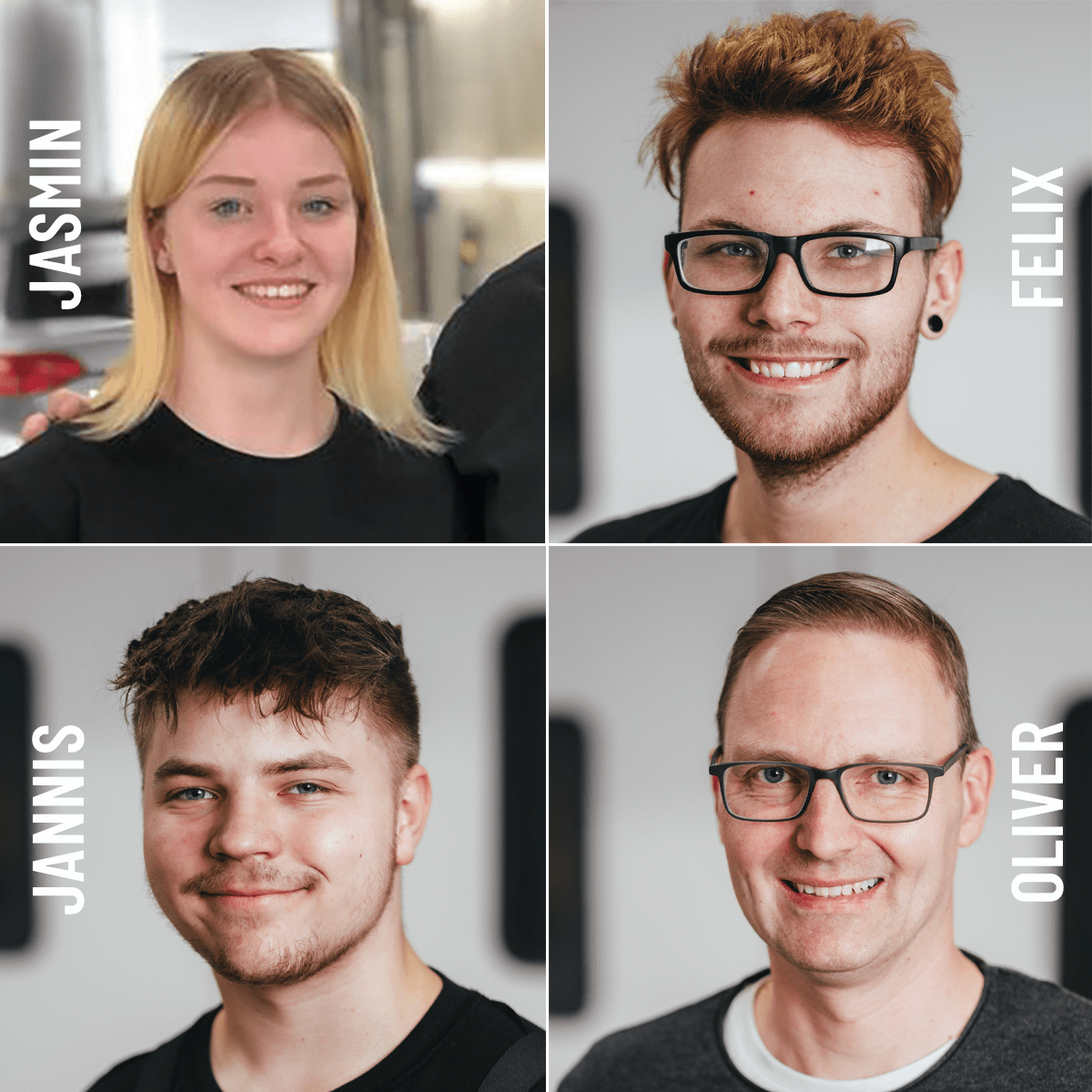 Gleich vier engagierte “Glanzbeauftragte” konnten wir in den vergangenen Wochen im Team begrüßen! Zwei neue Auszubildende – Jasmin im Lackbereich und Jannis im Karosseriebereich – werden in den nächssten drei Jahren alles über Glanz und glattes Blech lernen. Bei Felix, unserem neuen Karosseriebaugesellen, haben Rost und Dellen keine Chance. Ebenso wenig wie bei Oliver, der als Bürokaufmann für glänzende Organisation sorgt.